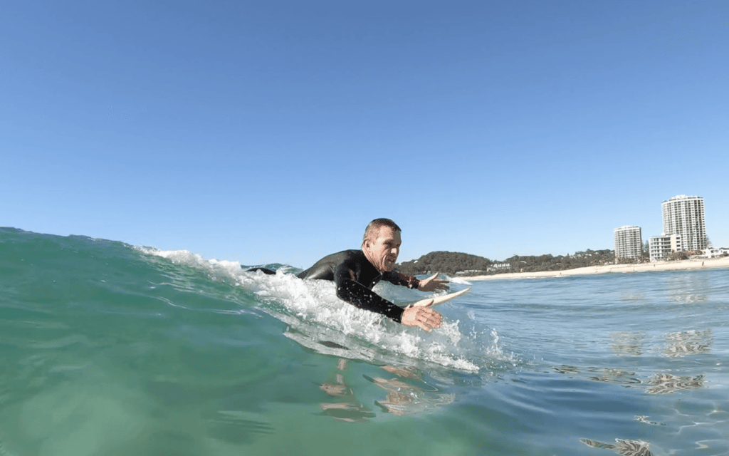 お尻を締めることは、単なる筋肉の緊張ではありません。適度な力で締めることで、骨盤が安定し、上半身の動きがよりスムーズになります。これは、陸上でのスポーツでも重要視される基本的な体の使い方です。波の上でも同じ原理が適用され、より安定した姿勢を作り出すことができます。